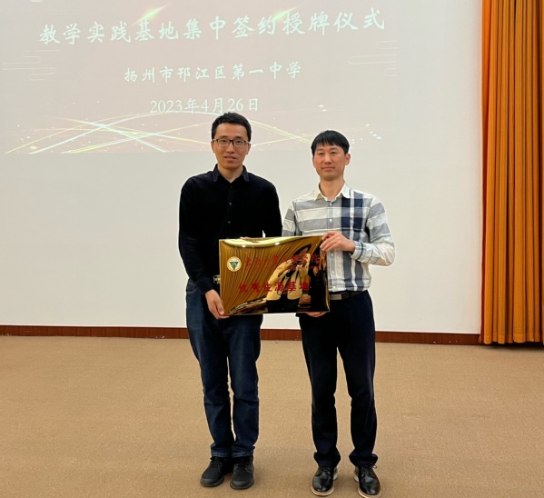 仪式上,学生处副处长苏力代表学校与扬州市邗江区第一中学副校长梁树来签署了优秀生源基地协议书,制药与化学工程学院党总支副书记周继荣代表学校向邗江一中授“优秀生源基地”铜牌,邗江一中副校长陶飞代表学校接牌。