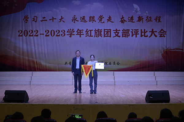 大会以歌声嘹亮的《光荣啊,中国共青团》团歌拉开序幕。本次评选大会分为支部风采展示和提问答辩两个环节。评委根据各支部前期递交的材料,从支部思想建设,班风、学风建设,现场展示、答辩、老师指导参与情况等各方面进行综合打分。参评支部根据赛前抽签顺序依次展示支部风采,并在3分钟内回答评委的现场提问,展现了各支部的青春活力和凝聚力。经过激烈角逐,最终21建筑学1团支部、21财务管理2团支部和21风景园林1团支部荣获“活力团支部”荣誉称号,其中21建筑学1团支部荣获新学年“红旗团支部”称号。20风景园林1团支部的汪弘磊同学作为上一学年的红旗团支部代表进行发言,分享了支部的经历与经验,表达心声,寄托希望。最后,校团委书记潘明烽老师分别为获奖支部颁奖,并为新任红旗团支部授旗。