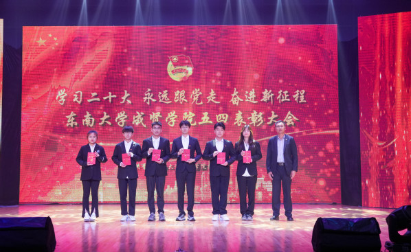 5月5日晚,“学习二十大,永远跟党走,奋进新征程”学院2022-2023学年五四表彰大会在综合楼报告厅举行。党委副书记、副院长、纪委书记王荣,党委学工部部长、学生处处长施杰,团委书记、党委学工部副部长潘明烽,后勤管理处副处长丁秀山,20届校友优秀毕业生、六合区雄州街道刘昊,分团委书记、辅导员老师及学生干部代表约600人参加了大会。