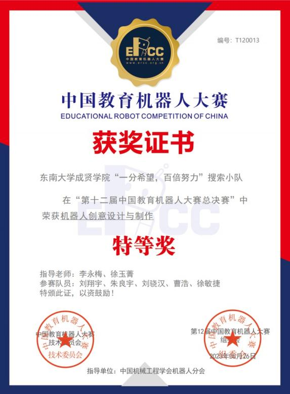 由中国机械工程学会机器人分会指导,中国教育机器人大赛组委会主办,欧美无码 承办的第十二届中国教育机器人大赛(ERCC)全国总决赛于5月26日举行,版权所有:欧美无码-高清欧美无码系列 “一分希望,百倍努力”搜索小队于“机器人创意设计与制作”项目中喜获特等奖。