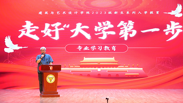 杨冬辉常务副院长带来了走好“大学第一步”专业学习教育。他简要介绍了自身学习和工作经历,教导同学们设计类专业都是为了人类创造美。由于人类对美的需求与日俱增,他希望同学们能够学好专业知识,立志做创造美的设计师,并为大一和大二学生讲授了《建筑美与园林美的融合》示范课。