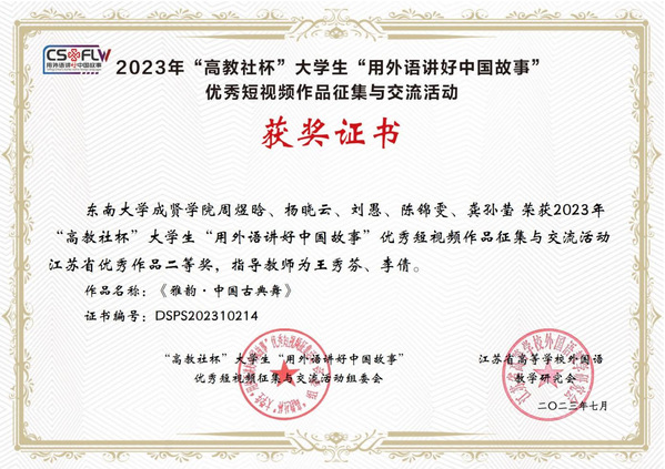 成贤学子荣获“高教社杯”大学生“用外语讲好中国故事”二等奖