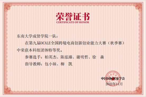近日,由中国国际贸易学会主办的第九届OCALE全国跨境电商创新创业大赛圆满落幕。由经济管理学院学生组成的六支代表队在大赛中获得了团体特等奖两项、一等奖两项、二等奖和三等奖各一项。