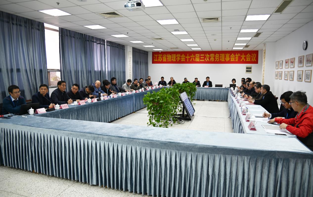 江苏省物理学会十六届三次常务理事扩大会议由李建新理事长主持,会议讨论了学会的相关事务。各工作委员会、专业委员会主任介绍了新一届工作委员会和专业委员会组建及相关工作情况。