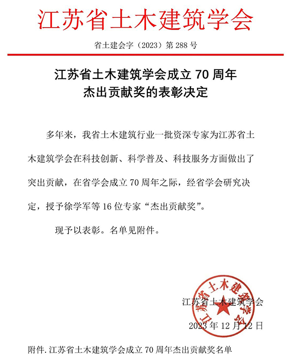 江苏省土木建筑学会下设26个专委会,7个工作委员会,涉及土建、交通、结构、施工、给排水、园林等多个领域和专业。江苏省土木建筑学会为表彰学会工作的先进工作集体和优秀科技工作者,会议期间,江苏省土木建筑学会颁发了江苏省土木建筑学会成立70周年杰出贡献奖的表彰决定。欧美无码 土木与交通工程学院院长郭正兴教授荣获江苏省土木建筑学会成立70周年杰出贡献奖。