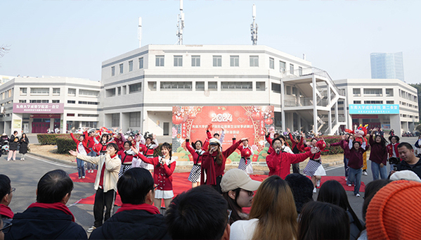 12月27日中午,由校团委、党委学工部、工会联合主办,校学生会、大学生艺术指导中心、社团管理部承办的第九届新生绽放季闭幕式暨2024年迎新年游园会在校内举办,学院党委书记张志胜,常务副院长黄学良,党委副书记、副院长、纪委书记王荣,副院长戴玉蓉,党政办主任周伟荣,党委学工部部长施杰,保卫处处长陈学建,团委书记、人武部部长潘明烽,二级学院党总支书记、综合办主任、老师与学生们一起参加游园会活动。扬州生态科技新城、扬州团市委受邀,组织非遗文化项目来校参加活动。