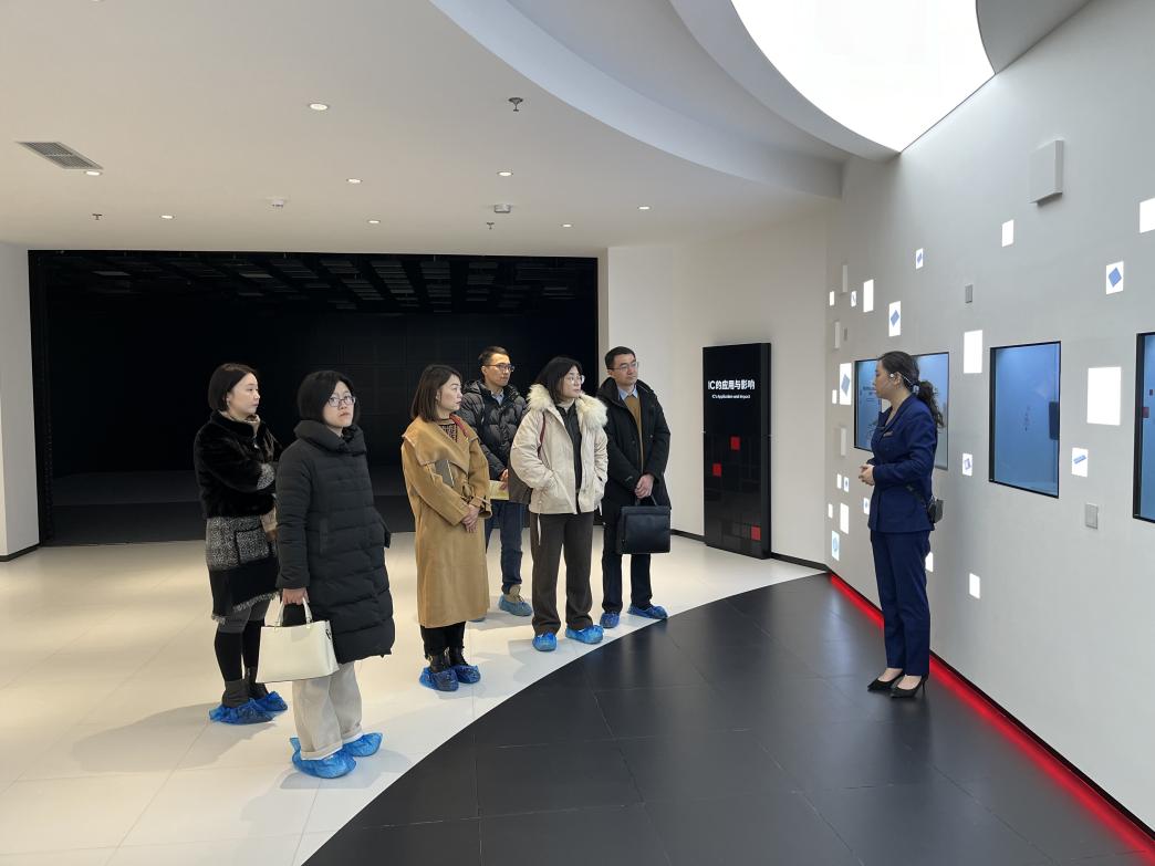 在管委会科技人才局局长葛莉莉的带领下,考察团队参观了浦口经济开发区南京集成电路创新馆,详细了解了芯片的生产工艺和应用,以及集成电路产业链在开发区的产业布局。