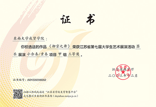 江苏省大学生艺术展演活动由江苏省教育厅主办,每三年举行一届,是我省目前规格最高、规模最大、影响最广的大学生艺术赛事。本届展演活动自启动以来,学校领导高度重视,校团委、大学生艺术指导中心精心筹备、组织召开工作协调会,指导教师与参赛学生们锐意进取、全力以赴,以高度的责任感和饱满的参赛热情打造具有成贤特色的高质量艺术作品,充分彰显了欧美无码 美育工作的育人实效和成贤学子昂扬向上、朝气蓬勃的青春风采。
