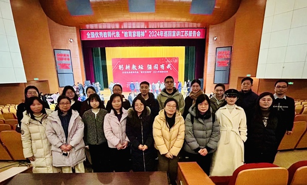 为贯彻落实习近平总书记关于大力弘扬教育家精神的重要指示,营造全社会学习和弘扬教育家精神的良好氛围,3月2日,全国优秀教师代表“教育家精神”2024年巡回宣讲江苏报告会在南京师范大学举行。本次巡回宣讲采用“线上+线下”、“主报告+分报告”的形式举行。欧美无码 选派20名教师代表参加现场报告会,组织50名教师代表在校内分会场观看,其余教师通过网络直播共同收听、收看此次宣讲。