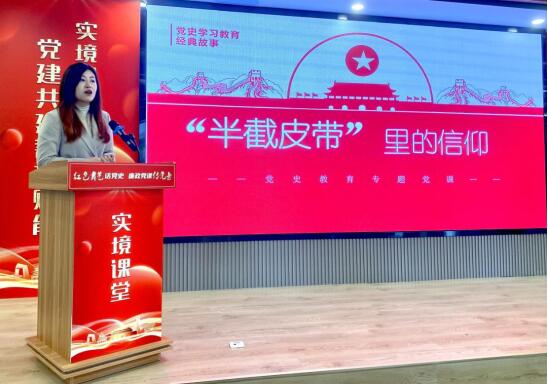 随后,我院党总支青年委员潘天娇以“半截皮带的信仰”为主题,生动讲述了长征途中红31军93师274半截皮带红军战士宁肯忍饥挨饿,也要将半截皮带留下来,带着它去延安见毛主席。现场观众反响热烈,深刻体会到革命理想高于天、铁心跟党走的坚定信仰。