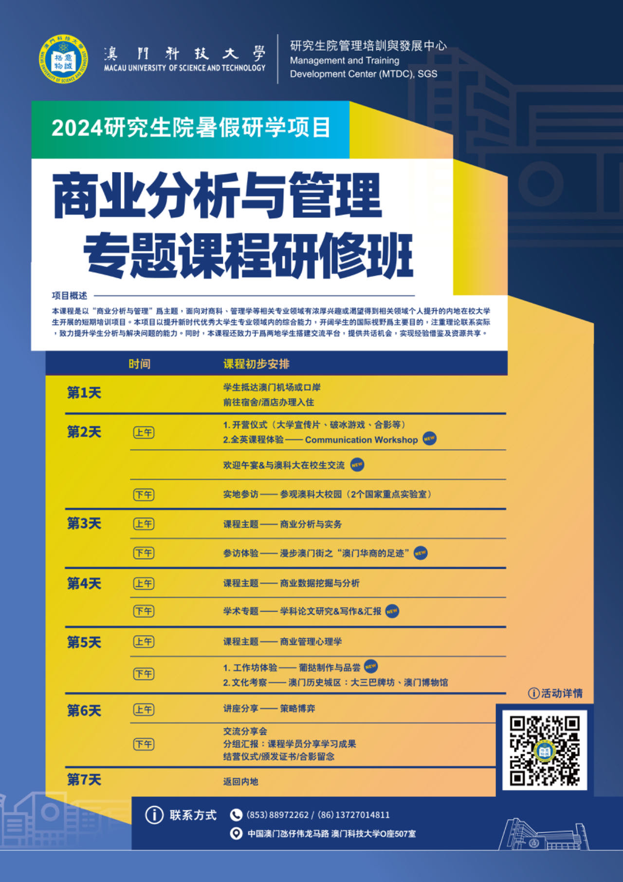 1.PDF文件《2024年澳科大研究生院暑假研学项目》方案