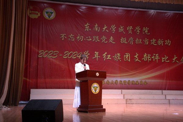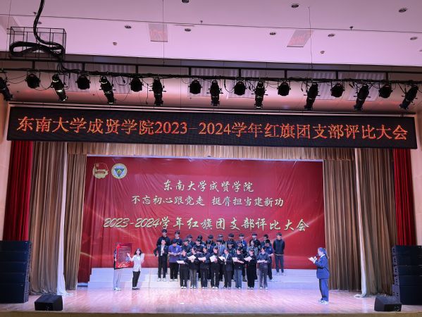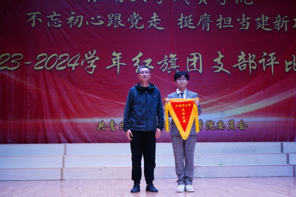 大会以歌声嘹亮的《光荣啊,中国共青团》团歌拉开序幕。本次评选大会分为支部风采展示和提问答辩两个环节。评委根据各支部前期递交的材料,从支部政治建设、组织基础、联系服务、作用发挥四个方面和老师指导参与情况进行综合打分。参评支部根据赛前抽签顺序依次展示支部风采,并在2分钟内回答评委的现场提问,展现了各支部的青春风采。经过激烈角逐,最终22风景园林1团支部荣获新学年“红旗团支部”称号,21机电2团支部和22电子商务1团支部荣获“活力团支部”荣誉称号。21建筑学1团支部程弋格同学作为上一学年的红旗团支部代表进行发言,分享了团支部建设好的经验和做法。最后,校团委书记潘明烽分别为获奖团支部颁奖,并为红旗团支部授旗。