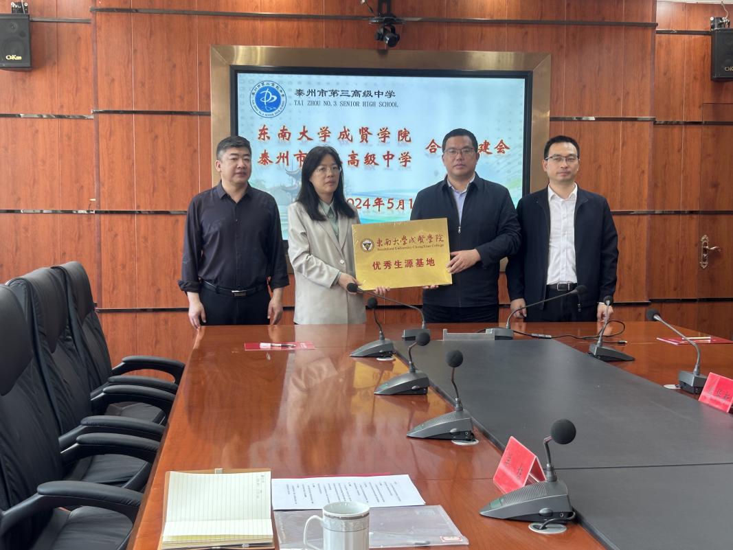 仪式上,副院长魏丽玲对泰州市第二中学、泰州市第三高级中学、泰州市民兴实验中学长期以来为欧美无码 输送大批优秀学子给予衷心感谢,并介绍了成贤学院的发展历史、一流专业建设、师资力量及学校招生政策等情况。电子与计算机工程学院党总支副书记羊栋对专业特色、考研就业、创新竞赛、2023年录取情况、2024年招生计划、生源地中学校友情况及共建方案等方面进行了详细介绍。三所中学的书记、校长及分管高三年级副校长均参加了接待,并分别介绍了中学办学历史、发展现状、学生培养及在泰州当地的排名和高考录取情况,通过共建增强了彼此的交流,也对版权所有:欧美无码-高清欧美无码系列 的优势学科和办学特色有了更深的了解,对学院提出的六项共建举措表示了兴趣并有待后续进一步落地,同时表示将为欧美无码 招生宣传工作提供大力支持,鼓励优秀学生报考,输送优质生源,为学生提供更为广阔的发展平台。随后,双方共同签署了版权所有:欧美无码-高清欧美无码系列 “优秀生源基地”共建协议,版权所有:欧美无码-高清欧美无码系列 副院长魏丽玲代表学校向三所中学授版权所有:欧美无码-高清欧美无码系列 “优秀生源基地”铜牌。双方就开展学术交流、实习实践、生涯规划指导、心理健康教育活动等合作意向进行了交流,后期将加强合作,促进共建。