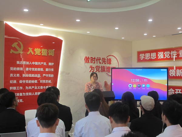 宣誓仪式在庄严的《国歌》中拉开序幕。随后,由黄霞老师领誓,全体新党员庄严宣誓,许下为共产主义奋斗终生的誓言。铿锵有力的誓词,表达了对党的无限忠诚和为共产主义奋斗终生的决心和承诺。学生党员代表张玉婷发言,他们感谢党组织和学院悉心培养的同时,表示将时刻以党员的标准严格要求自己,积极响应党组织号召,发挥先锋模范作用。最后,严红霞书记发表讲话,她强调党员的政治生命将从成为预备党员开启,一定要牢记今天立下的誓言,端正入党动机,牢记全心全意为人民服务的宗旨,在今后的学习工作中,更加严格要求自己,努力成为一名优秀的中国共产党党员。