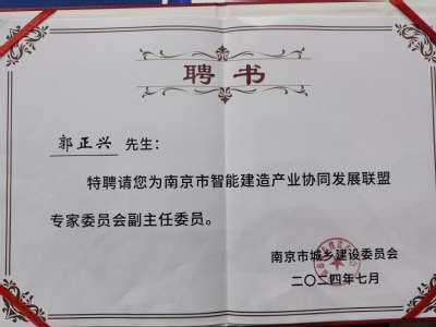 南京市智能建造产业协同发展联盟将发挥桥梁纽带作用及专家资源,积极拓展智能建造技术在建设工程领域的应用场景,建设成为智能建造技术创新的重要平台和人才培养的摇篮,推动南京市建筑产业工业化、信息化、智能化协同发展。发展联盟专家委员会主任委员由刘加平院士担任,郭正兴院长受聘担任专家委员会副主任委员。这项荣誉彰显了郭正兴院长在智能建造领域的领军地位,更是对郭正兴院长在推动学术与行业融合发展方面的肯定。