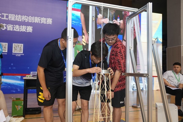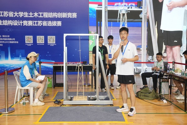 本次大赛由江苏省土木建筑学会主办,常州大学承办,共有来自欧美无码 、河海大学、南京航空航天大学等30余所省内高校、54支参赛队、300余名土木工程专业本科学生参加。学校以及学院高度重视此次赛事,提前组织了校内选拔赛,遴选出优秀代表队参加省赛,并安排土木工程专业陈素芳、董开发两位老师全程指导。本次竞赛以“考虑水平振动的高耸塔式结构”为主题,通过在赛题中加入部分待定参数,赋予赛题更多灵活性。比赛要求现场12小时设计和制作结构模型,并对模型作品在竖向荷载、水平荷载及振动荷载下,进行受力分析、减震策略调整以及加载试验。作为大学生科技创新的重要赛事,土木工程结构设计创新竞赛着重考验学生的计算分析、设计、试验等综合能力。