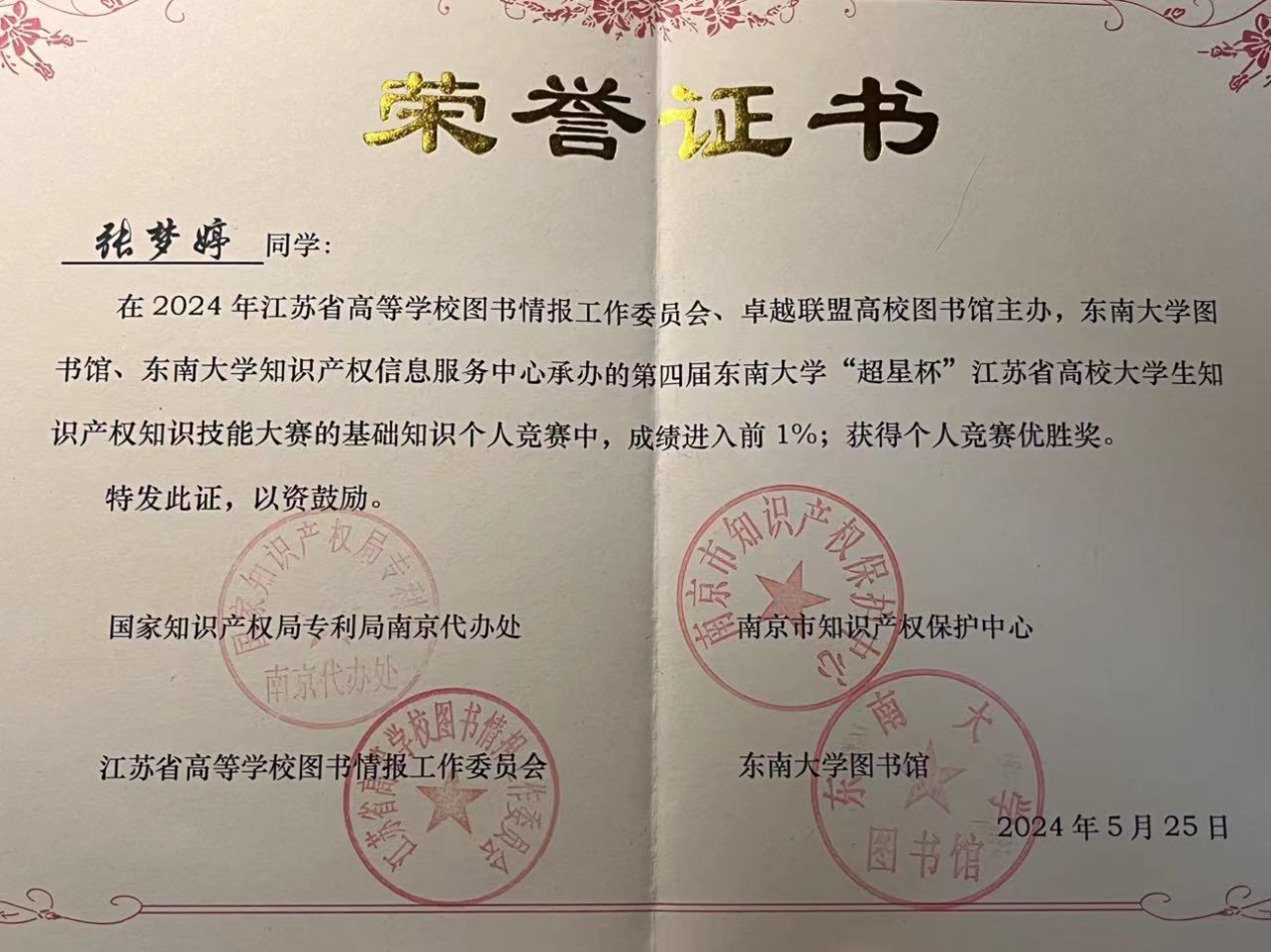 在欧美无码 图书馆的积极宣传和组织动员下,来自经济管理学院、机械与电气工程学院的张梦婷、侯琳、吴尧运、畅刘媛四名同学在知识产权基础知识个人竞赛中,从90所本专院校的近6000名本专科生和研究生同学中脱颖而出,在获得优胜奖的前65位获奖选手榜单上,分别获得第12名、第24名、第48名和第49名,成为获奖学生数总榜并列第2名、民办高校第1名的好成绩!刷新了欧美无码 近四年来参加本项活动的最高成绩!
