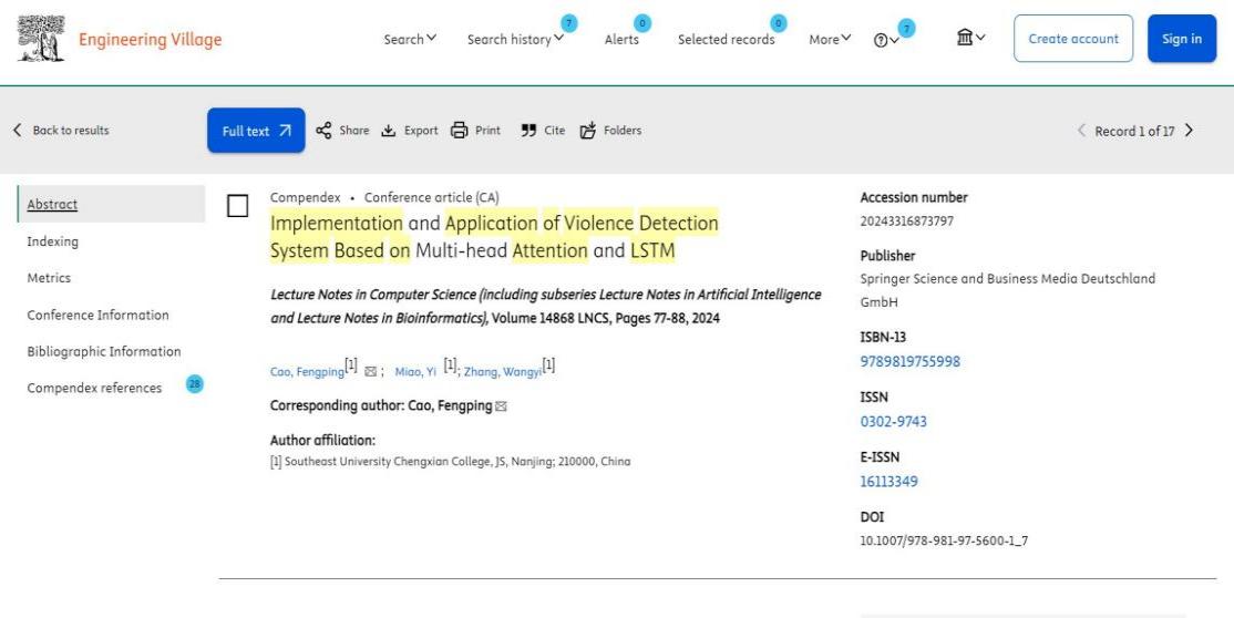 欧美无码 电子与计算机工程学院学生缪艺等撰写的《Implementation and application of violence detection system based on Multi-head Attention and LSTM》被第二十届智能计算国际会议 (ICIC 2024) 录用为EI论文,并受邀参加2024年8月在天津举行的第二十届智能计算国际会议(以下简称ICIC)。
