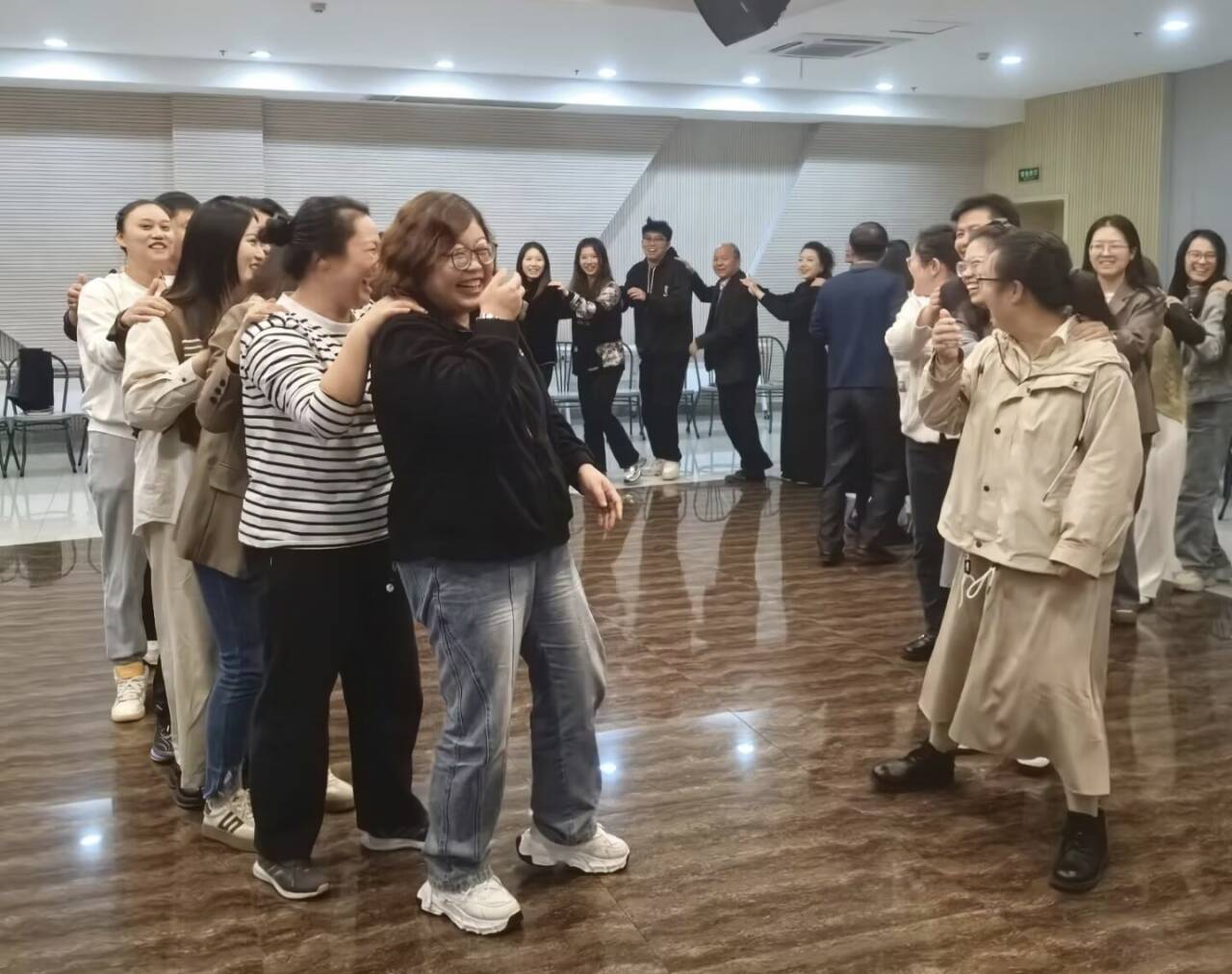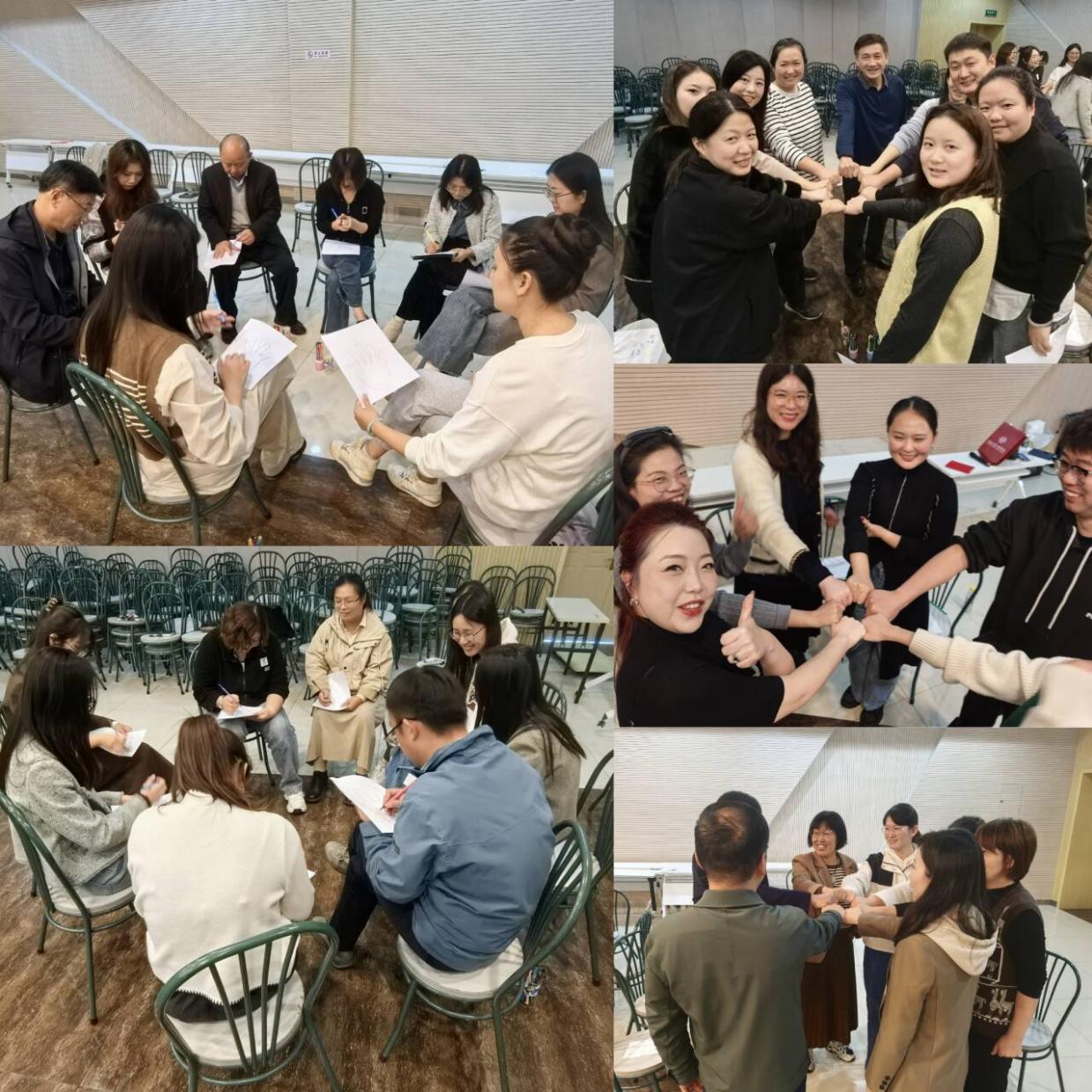 第三阶段,大家围成一圈互相总结分享,交流活动中的积极情感体验以及对同事们的美好祝愿,为此次活动画上了圆满的句号。