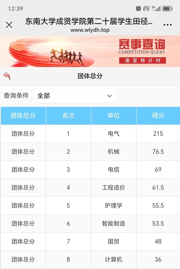 附:运动会各专业总分表、奖牌榜。