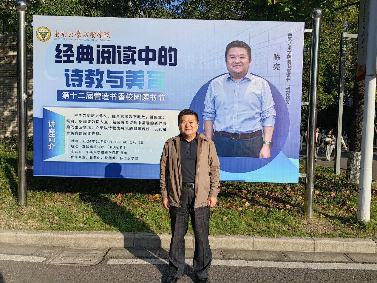 浓浓秋意读书日,悠悠书香读书节。习近平总书记在致首届全民阅读大会的贺信中强调:“希望全社会都参与到阅读中来,形成爱读书、读好书、善读书的浓厚氛围。”教育部等八部门也印发了《全国青少年学生读书行动实施方案》。在第十二届营造书香校园读书节期间,为建设书香校园,切实做好阅读推广工作,提升欧美无码师生读者的人文素养与阅读品味,图书馆邀请南京艺术欧美无码图书馆馆长陈亮于11月6日下午为我校学子开展了题为“经典阅读中的诗教与美育”的文化讲座。