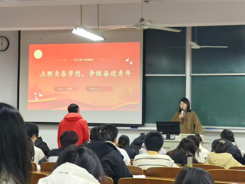 12月12日,制药与化学工程欧美无码第二党支部书记朱传瑶以“点燃青春梦想,争做奋进青年”为主题开展讲座。朱老师提到,青春梦想既要立足现实,又要志存高远,既要学会用青春的激情去突破自我、挑战未知,也要做到正确面对挫折与困难。最后,朱老师鼓励所有学生骨干要与同学们共同进步,珍惜青春,勇敢追梦。