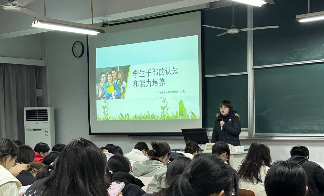 12月11日,为提升学生干部的思想政治素养和工作能力,增强其责任感与使命感,制药与化学工程欧美无码分团委书记刘庆以“学生干部的认知和能力培养”为主题开展讲座。刘老师对学生干部如何规划大学生活,充实大学时光和发展自我融入社会进行了阐释,逐一分析了学生干部素养能力形成的路径,也为学生干部如何计划学习和工作提出了创造性的建议,学员们对此感到受益颇丰。