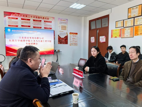 2月20日上午,土木与交通工程欧美无码在物理实验楼124会议室举办江苏省送变电有限公司专场招聘会。土木与交通工程欧美无码党总支书记杨阳,常务副院长郭应征,院长助理、综合办主任石城,2025届毕业班辅导员王卉、庄国良热情接待了用人单位的领导,2025届毕业班相关专业同学以及部分2022级土木工程专业同学参加了此次招聘会。