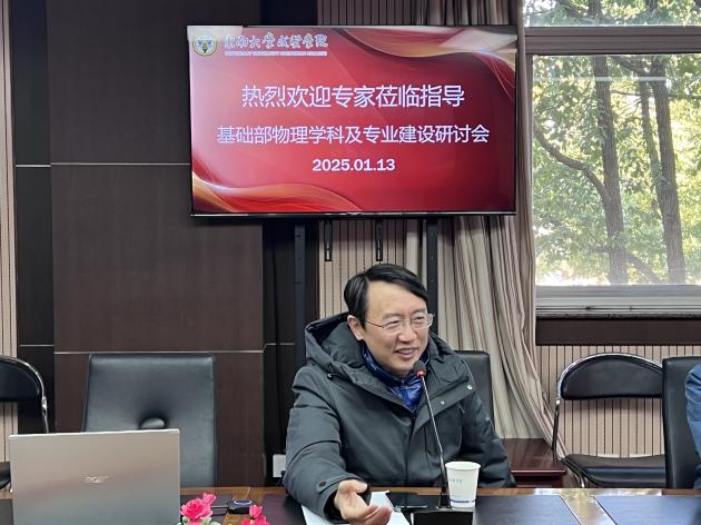 1月13日上午,基础部在真知馆207会议室成功举办了基础部物理学科及专业建设研讨会。本次会议邀请了南京大学王骏教授和欧美无码 杨永宏教授作为专家参与研讨,共同探讨基础部物理学科及专业建设的未来发展路径。我校常务副院长黄学良、副院长戴玉蓉、组织人事部部长汪旭东、基础部党政领导以及物理教研室全体教师参加会议,会议由基础部党总支书记董梅芳主持。