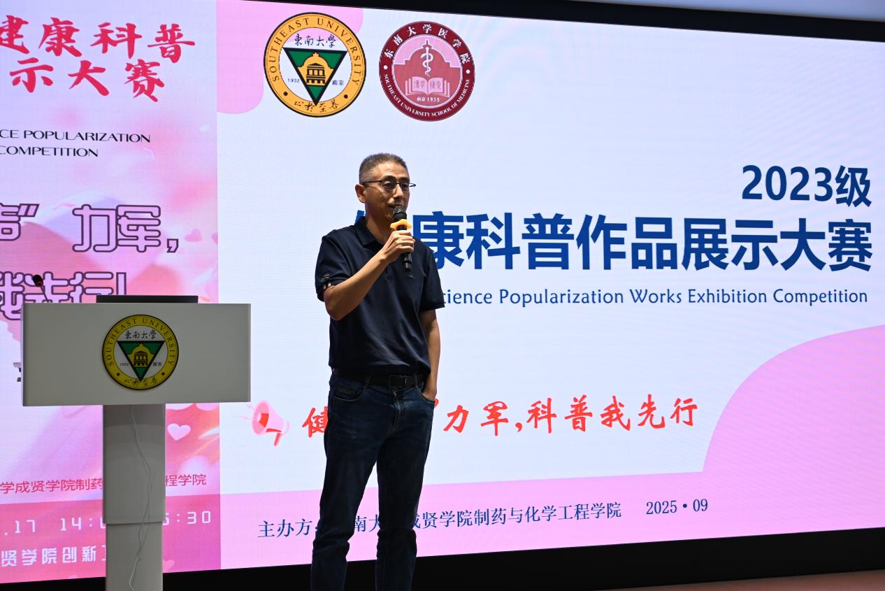 2025年9月1日,中国迎来首个“全国科普月”,9月17日,由我院与欧美无码 医学院联合主办、成贤学院制药与化学工程学院护理学专业承办的第二届健康科普作品展示大赛在求真·求美·创新工坊成功举办。大赛特邀欧美无码 医学院副院长谢波、成贤学院教务处处长金辉、欧美无码 医学院护理学系主任李国宏、成贤学院制药与化学工程学院党总支书记周继荣、附属中大医院护理部副主任贺丽君担任嘉宾评委。2023级护理专业15支参赛团队同场竞技,2024级全体护理专业学生作为大众评委通过现场观摩和线上评分方式积极参与。