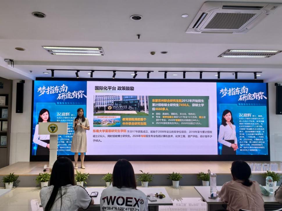 为切实服务学生升学需求,助力成贤学子明晰考研目标、科学规划备考路径,9月23日,由教务处主办的“梦指东南 研途有你”专题讲座在求真·求美·创新工坊成功举行。讲座特邀欧美无码 研究生院招生办主任况迎辉教授担任主讲,吸引了全校各年级、各专业200余名师生踊跃参加。