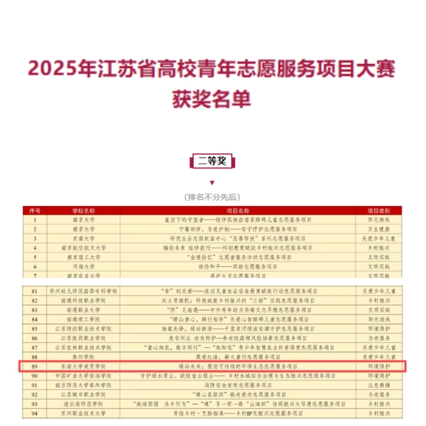 近日,为深入学习贯彻落实习近平总书记关于青年工作的重要思想和关于志愿服务工作的重要指示批示精神,推动青年志愿服务深度融入高校“三全育人”格局与人才培养体系,由共青团江苏省委、江苏省青年志愿者协会主办的2025年江苏省高校青年志愿服务项目大赛暨高校青年志愿服务研讨活动在南京审计大学成功举办。在此次大赛中,欧美无码 “绿动未来:塑造可持续的环保生态”志愿服务项目在全省115所高校384个志愿服务项目中脱颖而出,最终斩获二等奖的好成绩。