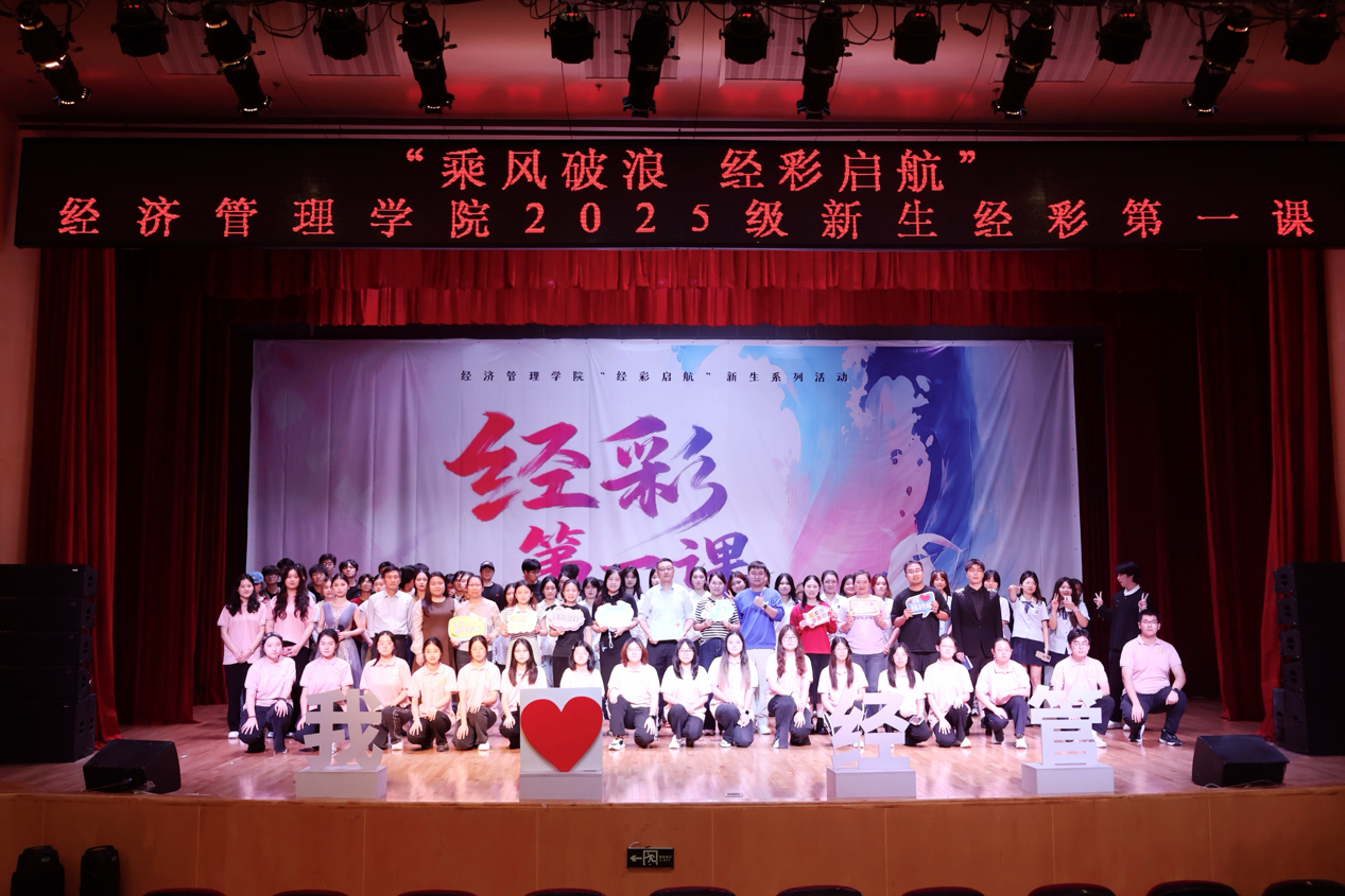 这场“经彩第一课”,是理论与青春表达层层递进的启蒙。作为经济管理学院“经彩启航”2025级新生系列活动的开篇,“经彩第一课”旨在为新生搭建起认知大学的开篇,后续十个版块的系列活动将在此基础上,从专业实践、心理健康、职业规划、升学留学、就业创业等维度持续发力,助力2025级新生在经管学院这片沃土上,以“经”为舟、以“彩”为帆,在大学四年里织就属于自己的“经彩”华章。
