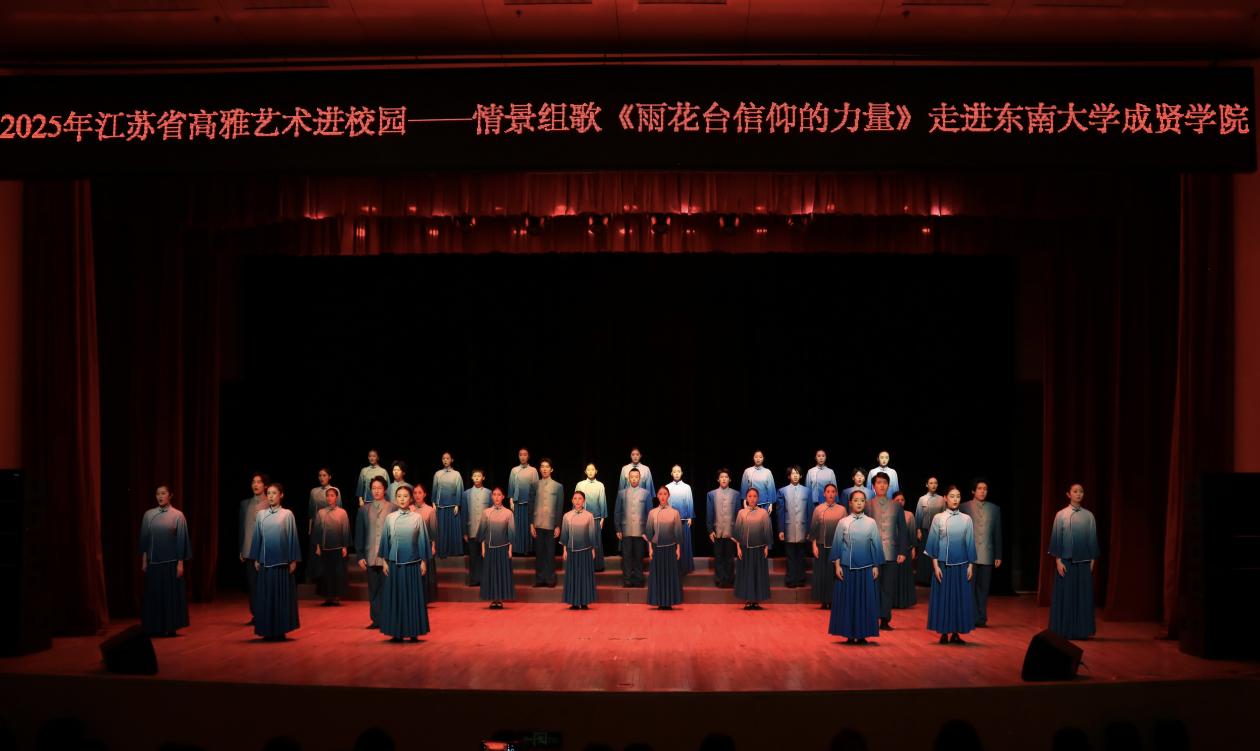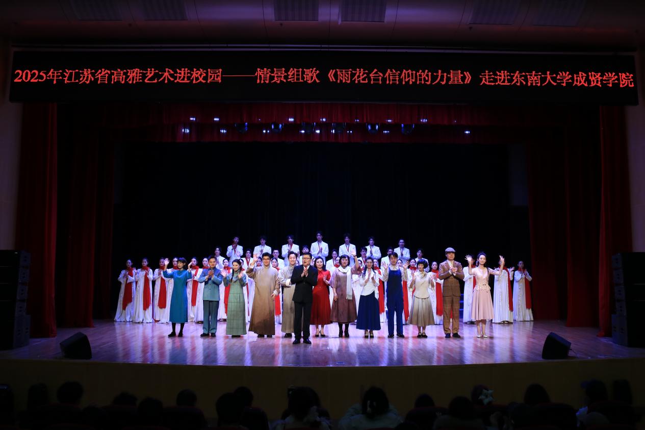 为弘扬红色文化,以美育浸润校园,11月6日晚,由校团委主办、大学生艺术指导中心承办的2025江苏省高雅艺术进校园——南京市歌舞剧院携情景组歌《雨花台信仰的力量》在综合楼313报告厅上演。以艺术为媒介,为全校650名师生呈现了一堂生动而深刻的“思政美育课”。