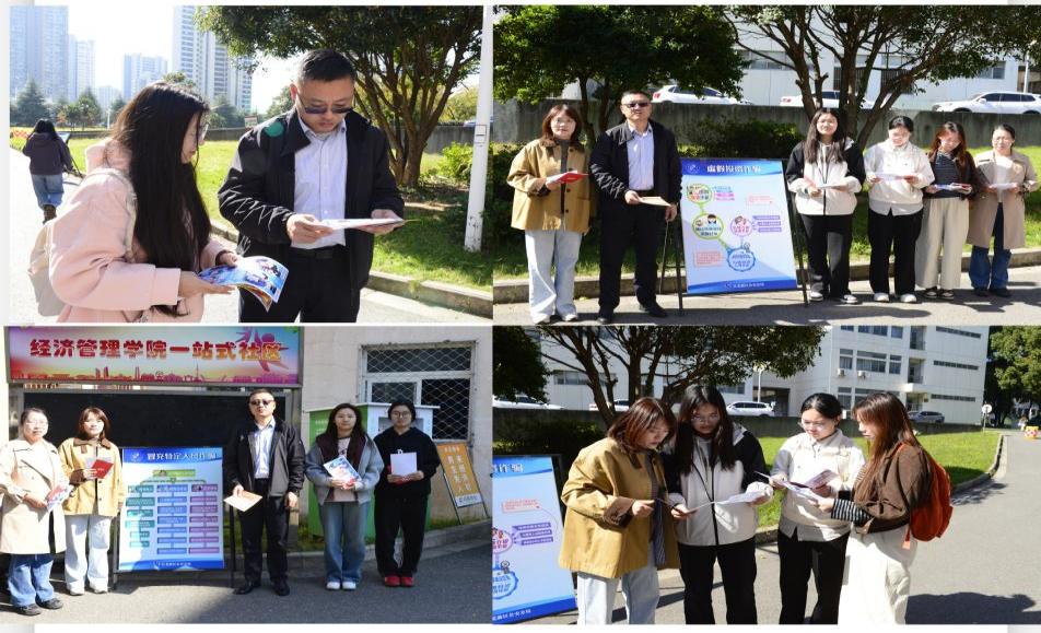 为全面提升学生金融素养,增强风险防范意识,引导学生自觉远离“校园贷”“金融贷”等陷阱,11月1日至15日,经济管理学院成功举办“第八届大学生金融节进校园”系列活动。本次活动构建了多层次、全覆盖的宣传教育体系,涵盖金融知识主干道及一站式学生社区宣传、专题讲座、辅导员主题班会等多个板块,将金融安全教育有机融入学生日常学习与生活场景,深化同学们的风险防范意识。活动累计吸引各专业2000名学生踊跃参与,经济管理学院党总支书记潘明烽、综合办主任程希羲、分团委书记潘天娇及全体辅导员参与活动指导,营造了全院共筑金融安全防线的良好氛围。