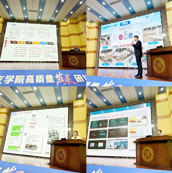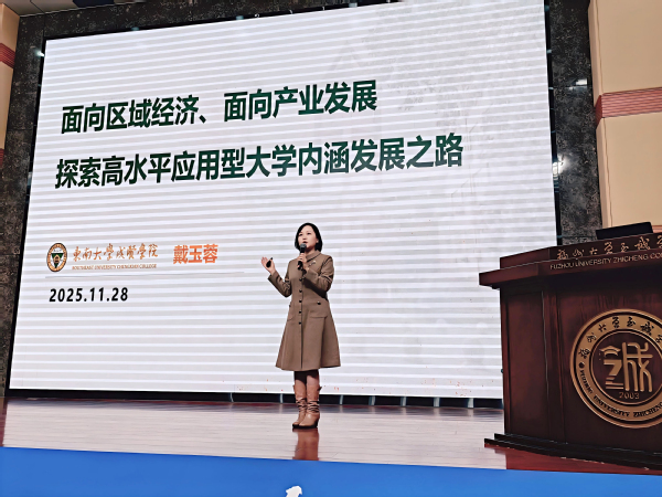 戴玉蓉副院长在大会上作了题为《面向区域经济、面向产业发展 探索高水平应用型大学内涵发展之路》的主旨报告。她系统介绍了成贤学院的办学沿革、学科特色与发展现状,深入剖析了当前独立学院面临的新形势与新挑战。报告科学阐释了高质量发展的核心内涵,并重点结合成贤学院的实践情况,分享了学科专业一体化建设的有效路径,以及创新应用型人才培养模式的探索经验。报告内容翔实、观点前瞻,引发了与会代表的强烈共鸣与高度评价。