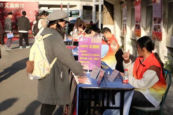 游园会围绕“知艾·防艾·关艾”核心主题,精心设置“艾梅乙名词雕像”“趣味套圈”等8个主题互动打卡点位。参与同学手持游园卡,逐点打卡集章,兑换定制公益纪念品,沉浸式的参与模式让防艾宣传从“被动听讲”转变为“主动探索”,有效提升了知识吸收效率。在“共绘红丝带”互动区,同学们纷纷执笔留言、粘贴丝带,共同拼贴成一幅承载着支持与关怀的集体作品,传递出青春友善的温度;在“初识艾梅乙”科普区通过图文并茂的展板陈列、趣味问答互动等形式,将疾病传播途径、科学预防方式等核心知识娓娓道来,让科普内容入脑入心;“HPV大冒险”互动区以情景选择游戏为载体,引导参与者在剧情推进中深入学习HPV感染预防要点与健康筛查的重要性;“安全猎人避险闯关”环节设计巧妙,通过模拟真实场景让同学们精准识别高危行为,掌握日常自我保护与关爱他人的实用技巧。此外,活动现场还设置“检测宣传”“义诊咨询”专属区域,提供快速检测服务与一对一专业咨询,轻松温暖的氛围让同学们卸下心理防线,主动了解自身健康状况,学习防艾知识。游园会以趣味化、场景化的表达,让严肃的防艾主题变得可亲近、可讨论,有效激发了同学们参与防艾宣传、学习防艾知识的主动性。