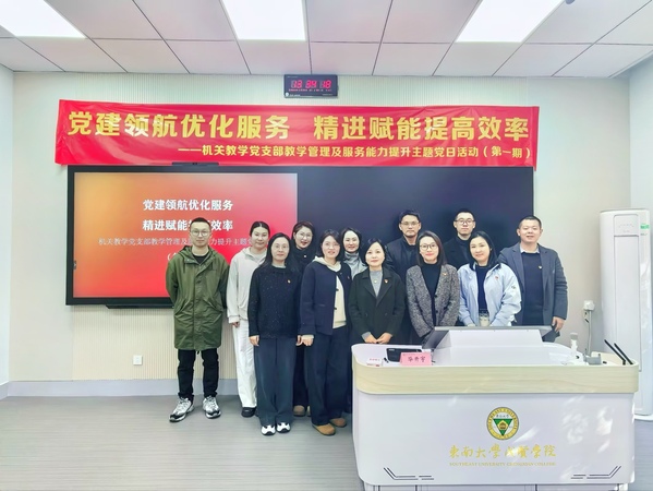 创新融合,领航方向:黄院长在总结讲话中指出,机关教学党支部积极探索创新路径,将政治学习与业务学习紧密结合,打破了传统党建活动和业务培训之间的界限。这种创新模式不仅丰富了党建活动的内涵与形式,使党建工作更加贴近实际、贴近工作、贴近党员,也为业务学习筑牢了坚实的思想基础和政治保障。他希望大家以此次活动为契机,凝聚共识、振奋精神、扎实工作,以更加饱满的热情、昂扬的斗志和务实的作风投入教学管理工作中。同时,他也希望大家持续学习、不断提升,以更专业的素养和更高效的服务为学校教学事业发展添砖加瓦,共同开创学校发展的崭新篇章。